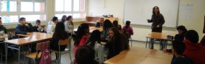 Endevinar paraules amagades, dibuixar una poesia, interpretar un haikus i altres poesies, crear l’últim vers d’un poema, entre d’altres sorpreses han estat alguns dels reptes que han hagut de superar tots els alumnes de 1r d’ESO que han participat en el taller “Vers la poesia” conduït per Mireia Chalamanch i Joan Carles Navarror.