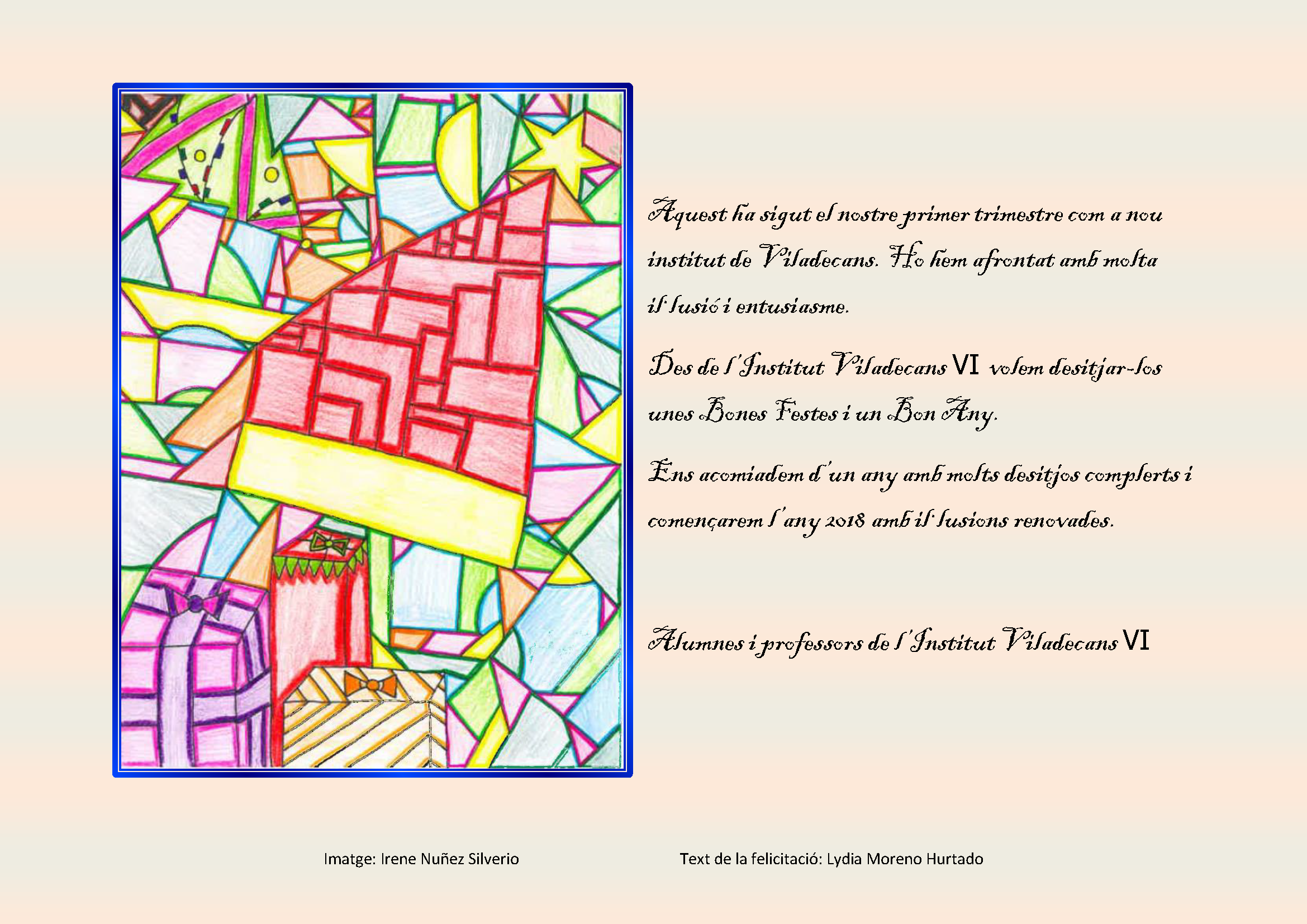 Estem a tocar de nadal i volem compartir amb tots vosaltres la gran il·lusió que per tota la Comunitat Educativa de l’institut Viladecans VI representa l’arribada del nou any 2018.