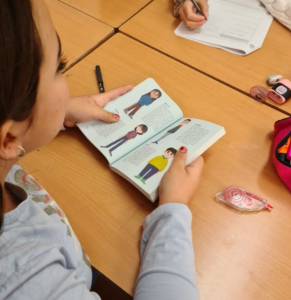 Després de fer una lectura dramatitzada a classe de《La foto de los diez mil me gusta》de @nandolopez_autor , l’alumnat de 1r treballa en grups un dossier sobre l’obra de teatre. 📝