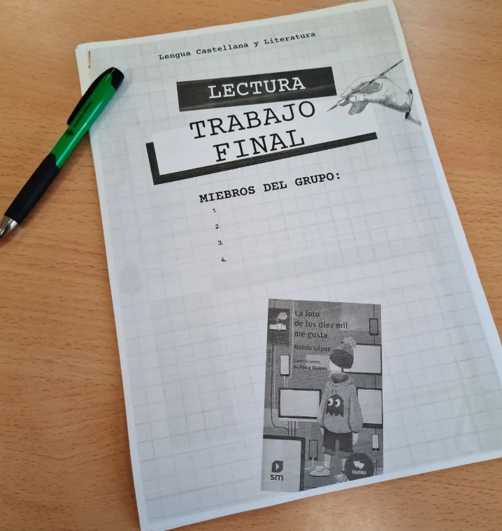 Després de fer una lectura dramatitzada a classe de《La foto de los diez mil me gusta》de @nandolopez_autor , l’alumnat de 1r treballa en grups un dossier sobre l’obra de teatre. 📝