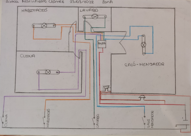 Al llarg del segon trimestre, els alumnes de segon, van estudiar l’electricitat des de l’assignatura de tecnologia, una vegada adquirits tots els coneixements bàsics d’aquest tema, es va realitzar en parelles la creació d’un circuit elèctric d’una casa utilitzant cartó ploma, interruptors, bombetes, cables i un brunzidor.