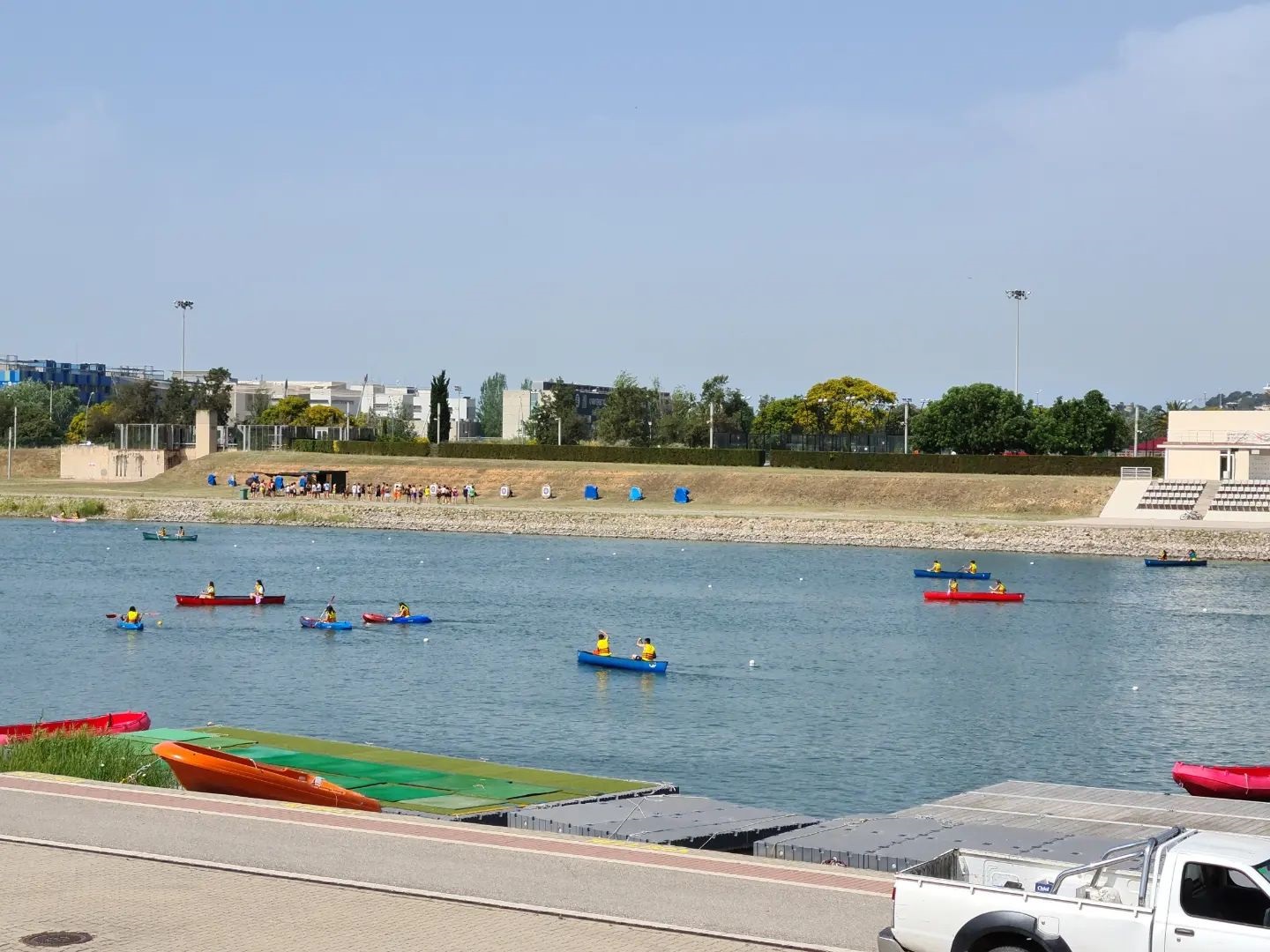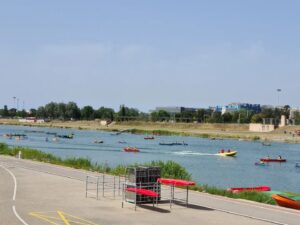 Sortida lúdica de final de curs al Canal Olímpic de l’alumnat de 2n d’ESO. Tot i la calor, van fer canoa i kayak en parelles i grups de tres.