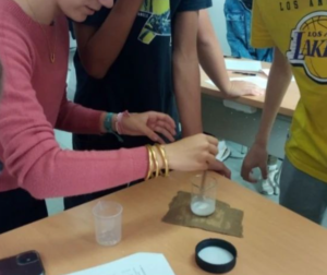 Entre les pràctiques fetes, cal destacar la de la reacció d’oxidació-reducció (Redox) entre el Sulfat de Coure i el Ferro, la reacció de neutralització del carbonat de calci amb l’àcid clorhídric per formar una sal, precipitar iodur de plom com a producte final d’una reacció química i van observar com les reaccions exotèrmiques desprenen energia en forma de calor i les endotèrmiques absorbeixen energia de l’entorn en forma de calor.