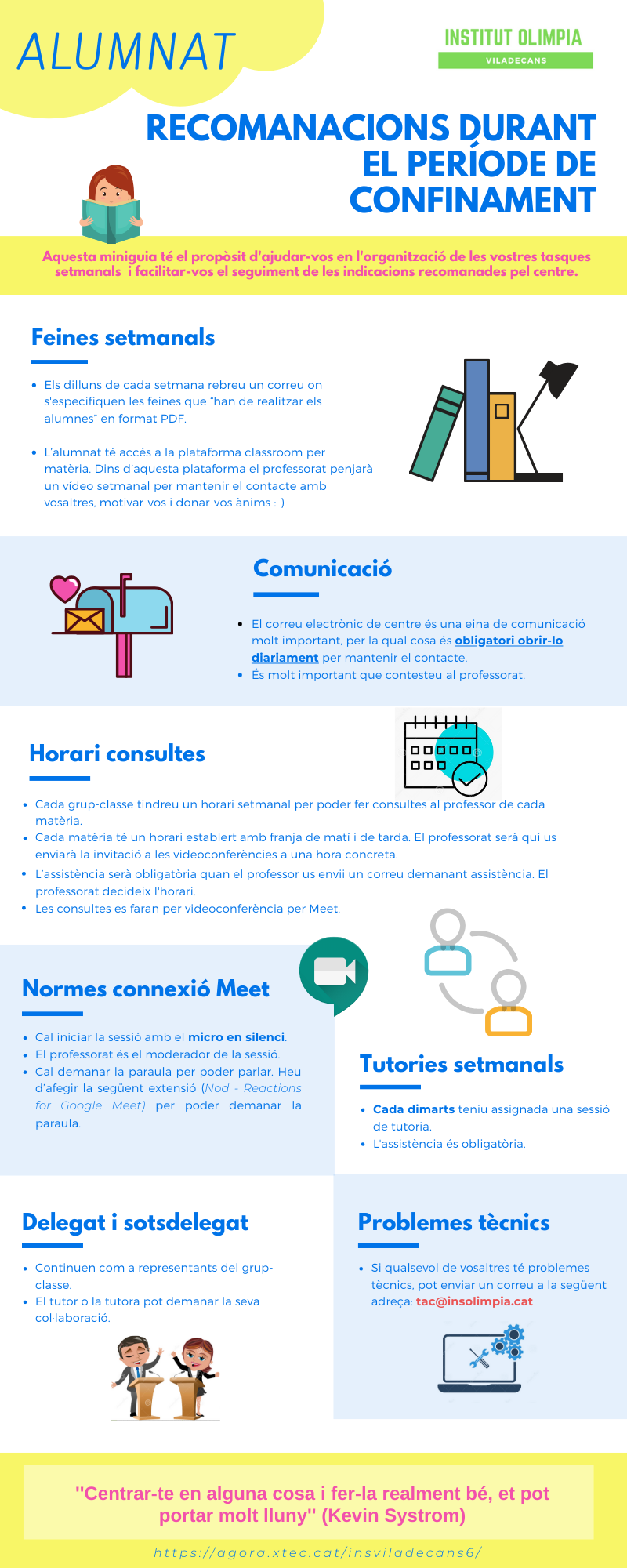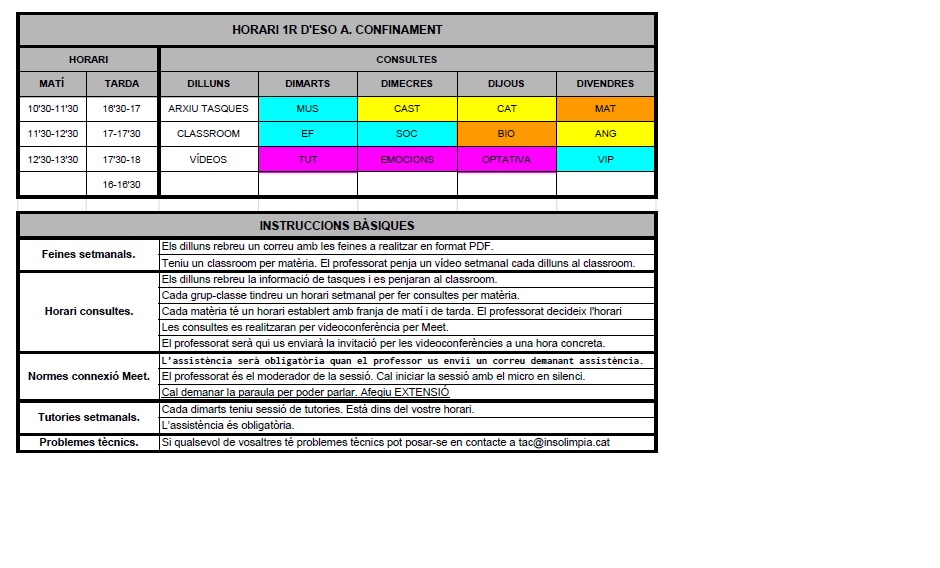 Cada grup-classe tindreu un horari setmanal per poder fer consultes al professor de cada matèria.