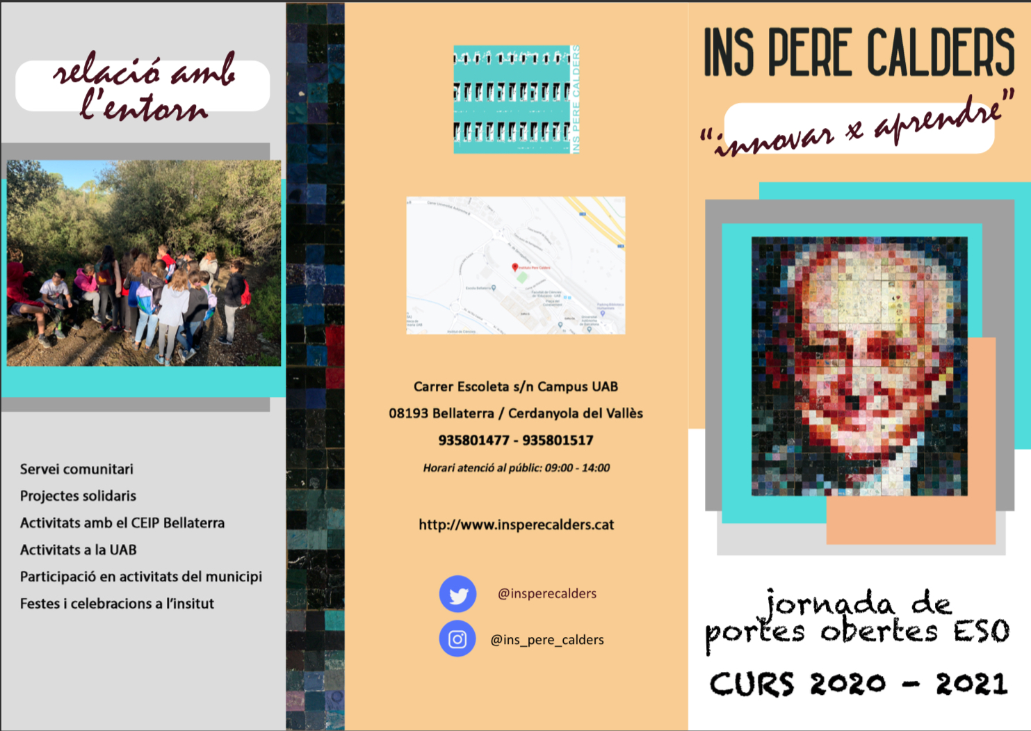 - A continuació mostrem el tríptic informatiu del centre, per donar a conèixer l’essència i el projecte educatiu del centre a totes aquelles famílies interessades.Per a més informació sobre el centre podeu contactar via mail amb la directora del centre, Núria Cardona, en el següent correu (també es pot concertar una trucada, si cal): ncardona@xtec.cat