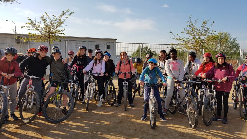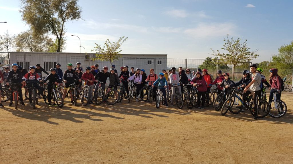 Els de 2n ESO, van gaudir d’una bona bicicletada amb els companys fins arribar al parc del tren de Palau, on van poder esmorzar, i jugar a diverses activitats que tenien preparades els professors acompanyants. Aquí unes fotos de tot el grup abans de la sortida des de l’institut.