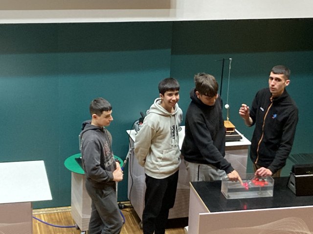 A més de gaudir de l’exposició permanent del Museu de la Ciència, va participar en un taller experimental, “Acústica i so”, que els va servir per conèixer aspectes tan diversos com la seva pròpia potència acústica, la ressonància, les figures de Chladni o com es combina música i foc en un tub de Rubens.