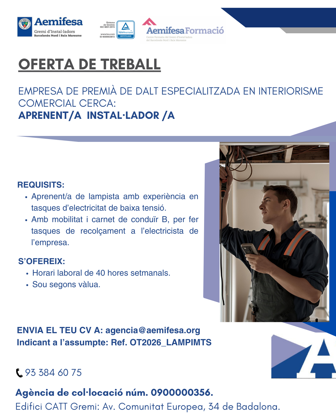 - Oferta de treball per a titulats/des en el CFGM d’Instal·lacions Elèctriques i Automàtiques