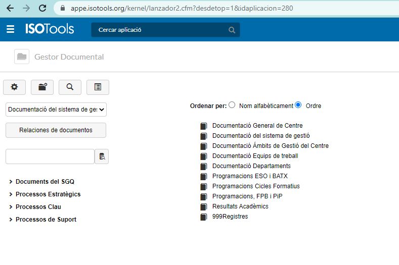 La documentació oficial (PEC, NOFC, projecte de direcció, etc) i el sistema de Qualitat es troba al gestor documental d’Isotools.