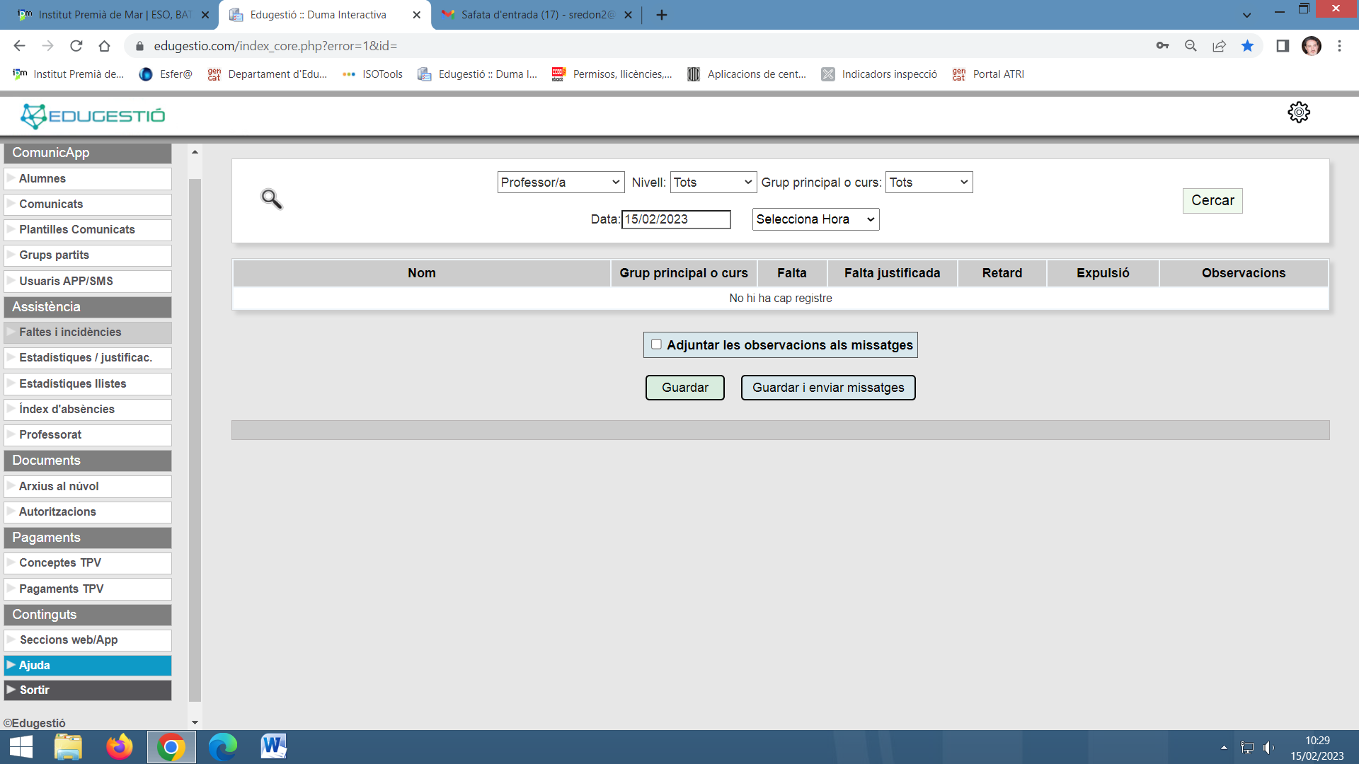 El control d’assistència dels alumnes, els comunicats i els pagaments es gestionen amb Edugestió: