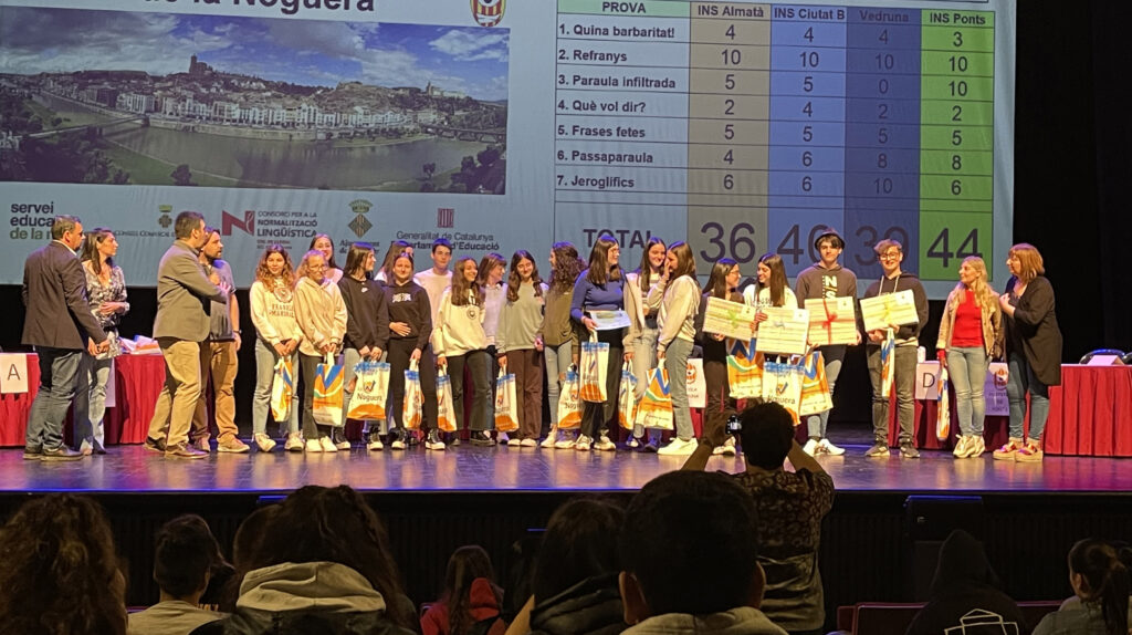 El dimecres 4 de maig de 2022 ha tingut lloc al Teatre Municipal de Balaguer la final de la XII Gimcana Lingüística de la Noguera. Els alumnes de 2n d’ESO de l’Institut d’Almatà, l’escola Vedruna Balaguer, l’Institut Ciutat de Balaguer i l’Institut de Ponts han participat en un concurs de diverses proves sobre llengua catalana.