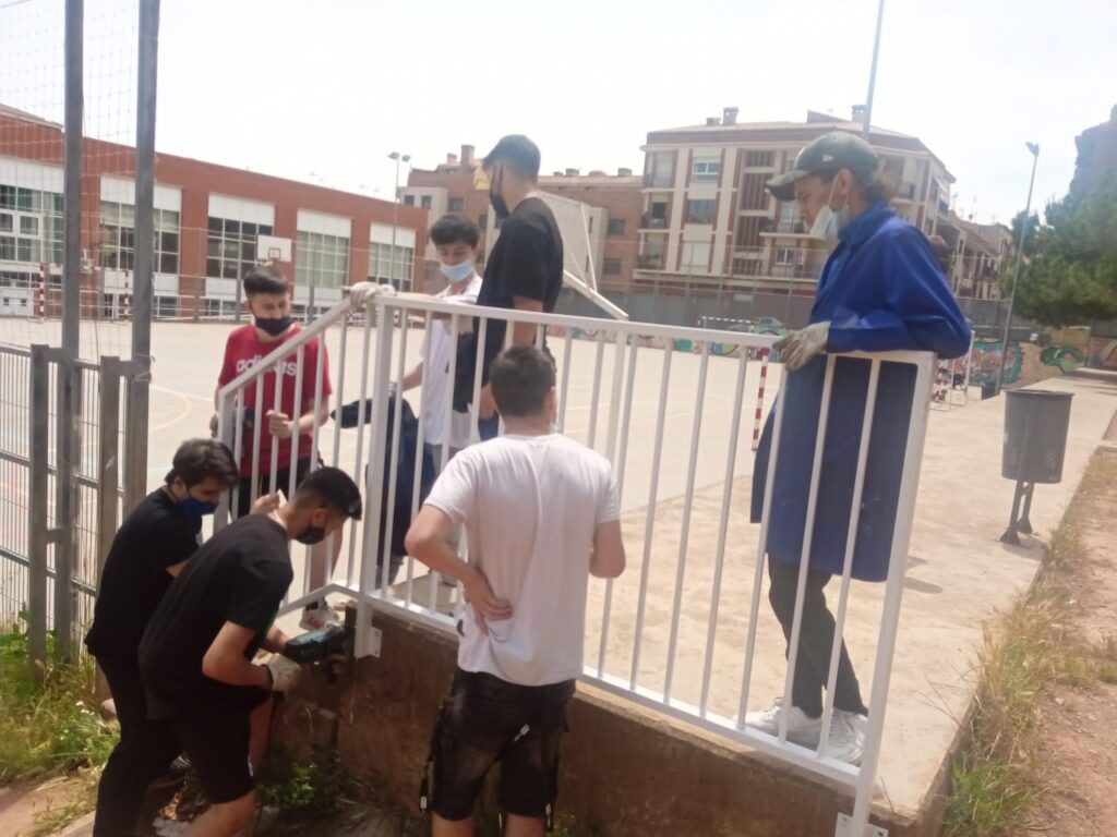 Els alumnes del PFI han col·laborat en la millora de les instal·lacions del nostre centre: col·locació de taules de ping-pong, muntatge de les taules de berenador per al pati, reparació i manteniment de portes i finestres i la col·locació d’una barana de seguretat al pati entre d’altres.