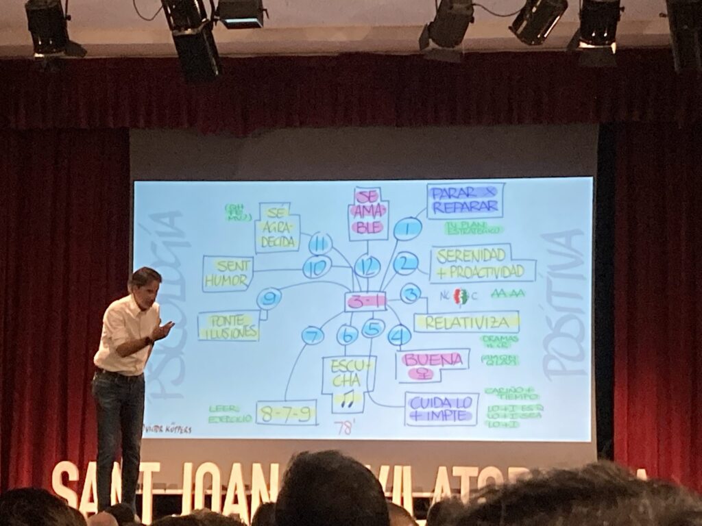 L’alumnat de 1r d’EAS i de 2n de BAT, divendres 04 de novembre van gaudir d’una conferència de l’expert en psicologia positiva, Victor Küppers. Es va a portar a terme a Cal Gallifa, i va ser un acte multitudinari on a part d’alumnat del Quercus hi havia la representació de diferents empreses.