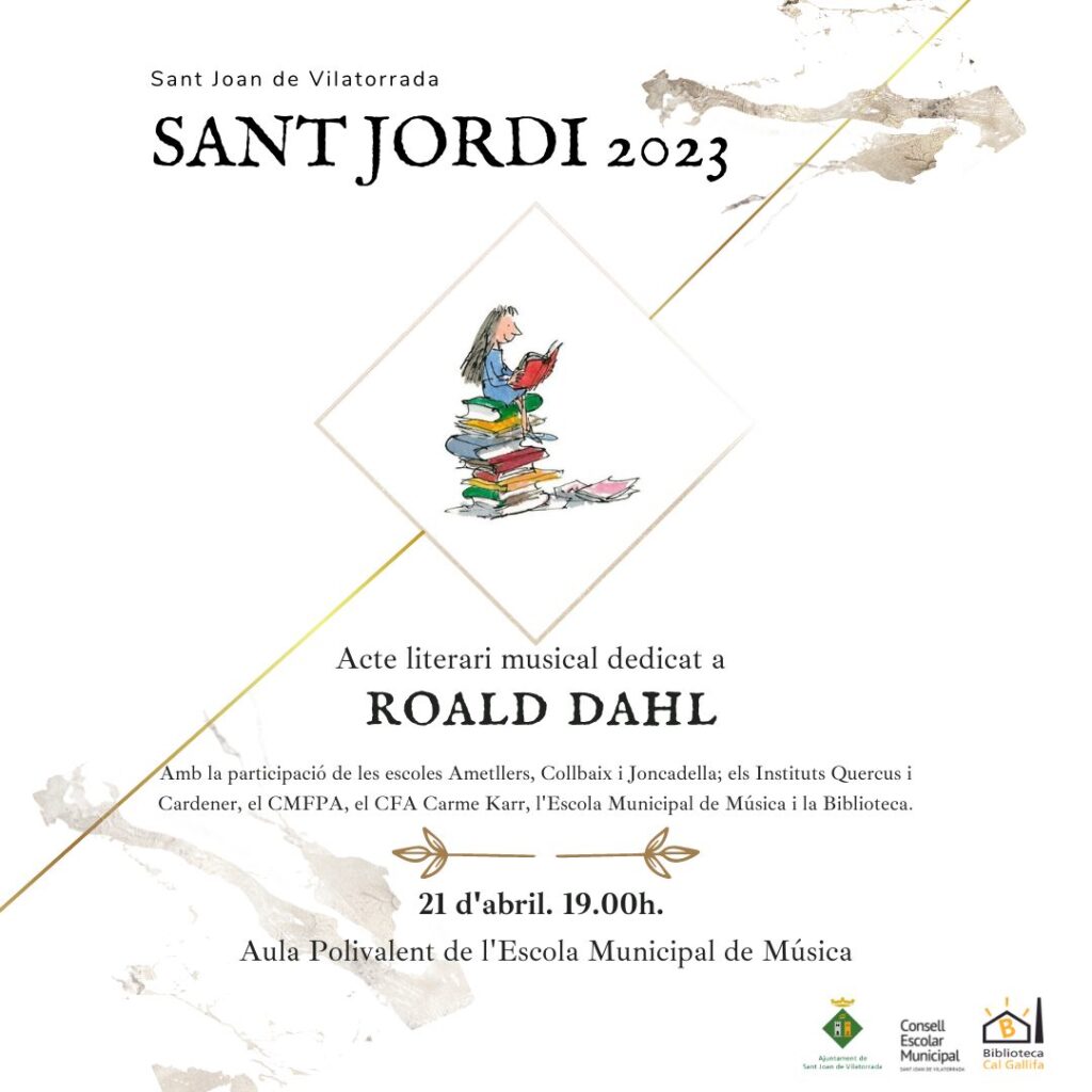 Acte literari el proper 21 d’abril a les 19.00 a l’aula polivalent de l’escola de música de Sant Joan de Vilatorrada amb la participació de tots els centres educatius.