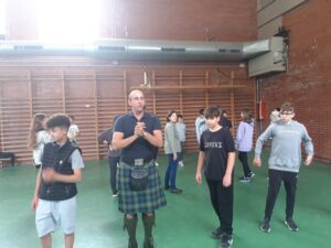 Els alumnes aprenen a fer balls típics escocesos de la mà del David que any rere any ens visita.