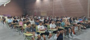 La jornada d’acollida a l’alumnat de 1r d’ESO ha començat a la sala d’actes amb la rebuda de l’equip directiu i després tothom ha anat descobrint quin seria el seu grup i la seva classe.
