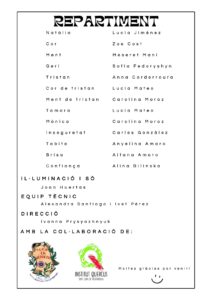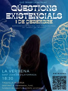 Aquest divendres 1 de desembre a les 18.30, a la sala La Verbena de Sant Joan de Vilatorrada, hi haurà la representació teatral que ha dirigit l’alumna de 2n de Batxillerat B, Ivanna Prysyazhnyuk, com a part pràctica del seu treball de recerca.
