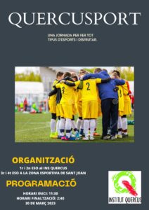 En motiu de la setmana de la salut els alumnes de cicles esportius d’EAS han preparat la Quercusport pels alumnes d’ESO. Una jornada plena d’activitats emocionants. Cliqueu a la imatge per veure el vídeo que han preparat.