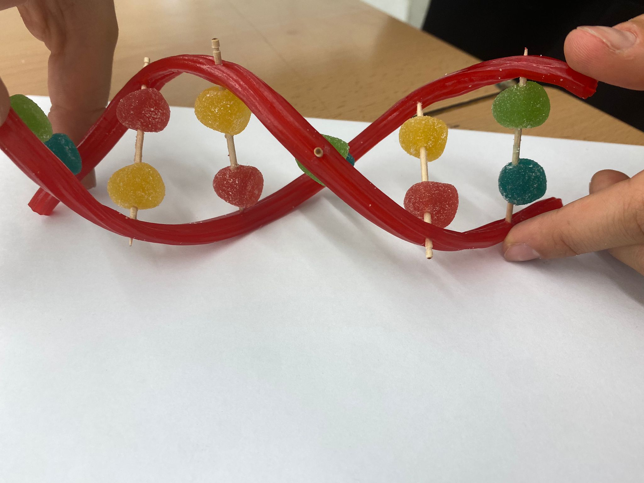 L’alumnat de 4t d’ESO de l’optativa de Biologia i Geologia ha realitzat una activitat amb llaminadures per construir un model d’ADN. Aquesta molècula és la portadora de la informació genètica que determina els nostres caràcters hereditaris i ens permet entendre el per què som com som.