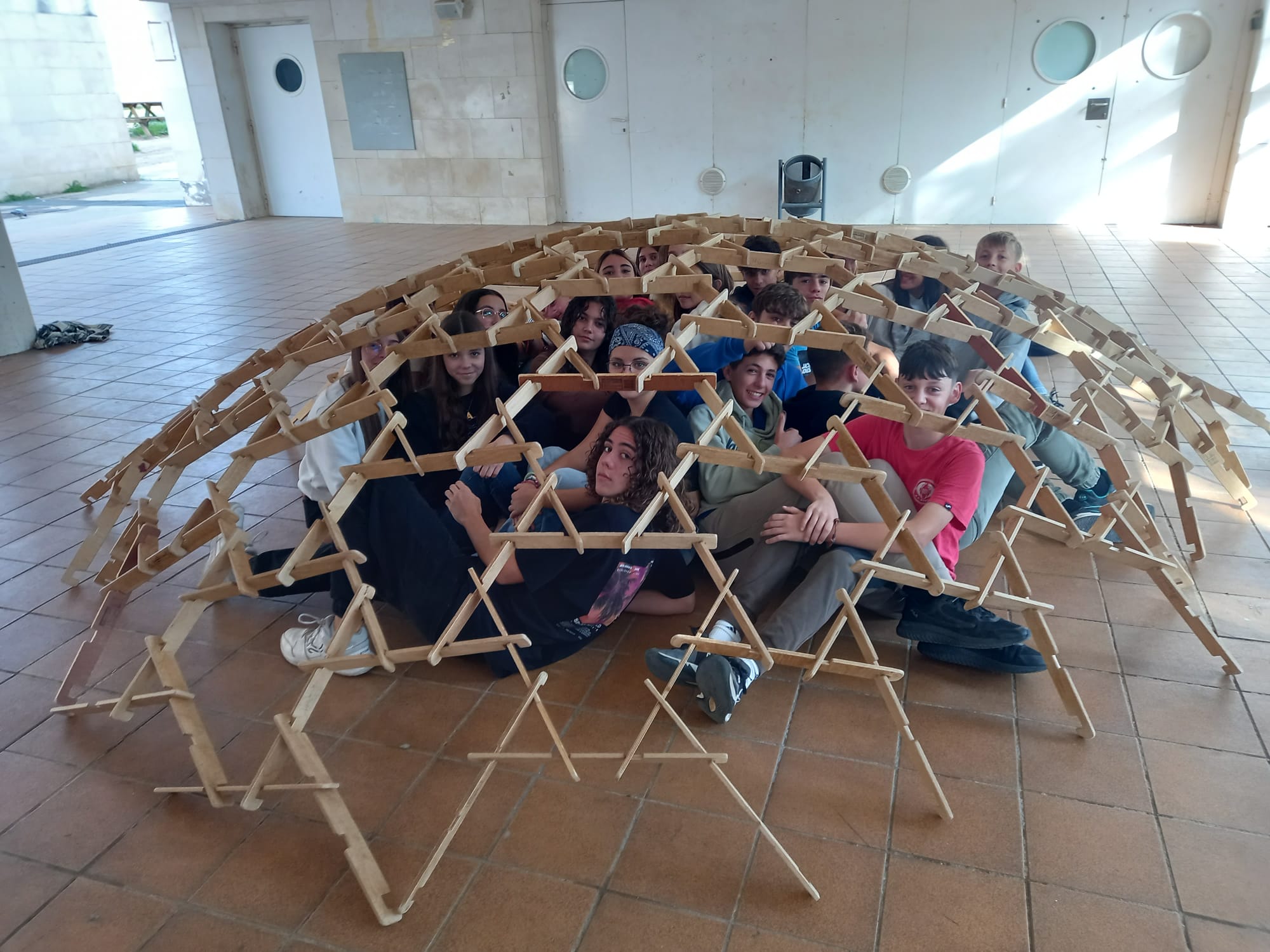 El passat 29 d’octubre, l’alumnat de 3r d’ESO va tenir l’oportunitat de gaudir de la visita del Museu de les Matemàtiques. Aquest any, el museu va portar la seva exposició itinerant al nostre centre, instal·lant-la a la SUM. Una de les activitats més destacades va ser la construcció d’una cúpula utilitzant els materials dissenyats per Leonardo da Vinci, una experiència que va permetre als estudiants explorar la connexió entre les matemàtiques i l’arquitectura d’una manera pràctica i divertida.