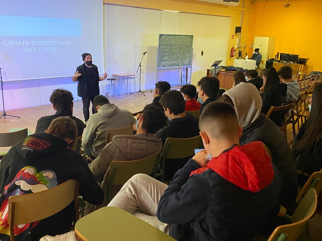 Com ja hem fet en els últims anys, el Departament de castellà hem tornat a apostar pel taller d’ Slam Poetry amb dos “slammers” reconeguts internacionalment. L’Slam és un concurs que es fa a nivell mundial, on els poetes reciten els seus escrits amb un temps limitat davant d’un públic que, normalment, decideix qui passa de fase. No es contesten, com a les “batalles de gallos”, sinó que l’artista expressa la seva poesia.