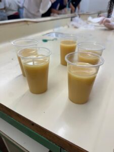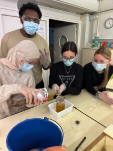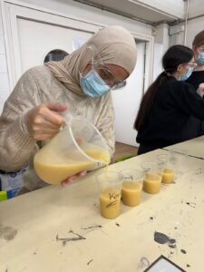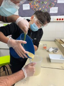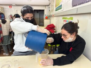 L’activitat va permetre als estudiants aprendre a donar una segona vida a l’oli de cuina usat, transformant-lo en sabó ecològic mitjançant una barreja d’aigua (500 ml), sosa càustica (100 mg) i oli reutilitzat (500 ml). A més de descobrir el procés químic, van prendre consciència sobre la importància de reduir residus i fomentar pràctiques més sostenibles en el dia a dia.