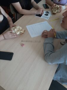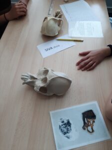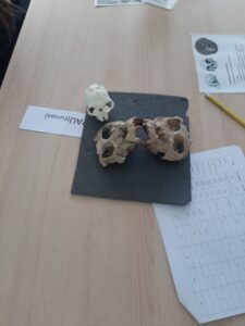 Després hem anat a fer el taller, que consistia en comparar diferents cranis d’homínids, anotar les diferències i establir un arbre genealògic entre ells. El taller es diu “Gairebé humans”. Nosaltres també som primats!!!