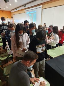 A més, va presentar als alumnes la seva pàgina web, des de la qual convoca cada any concursos de “booktràilers” sobre les seves novel·les juvenils, on els alumnes poden participar i guanyar un premi de 400 euros.
