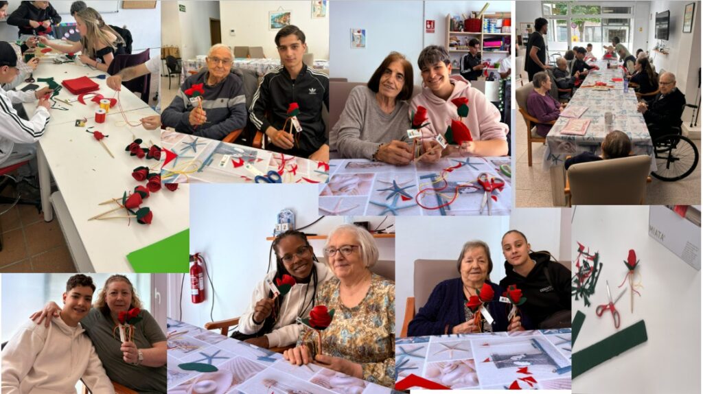 Un pont entre generacions amb l’objectiu principal de fomentar el vincle amb la gent gran del municipi. Durant tot el matí, parelles formades per joves i avis van treballar colze a colze utilitzant diferents materials per crear roses úniques, compartint converses i experiències de vida.