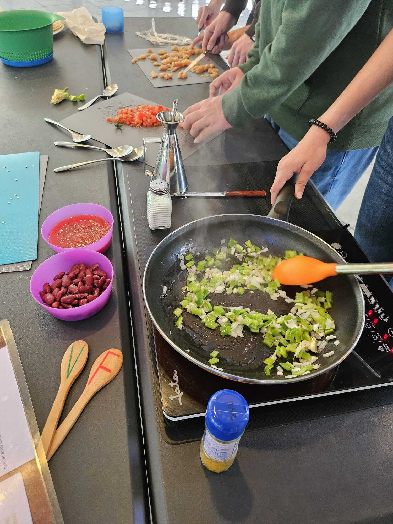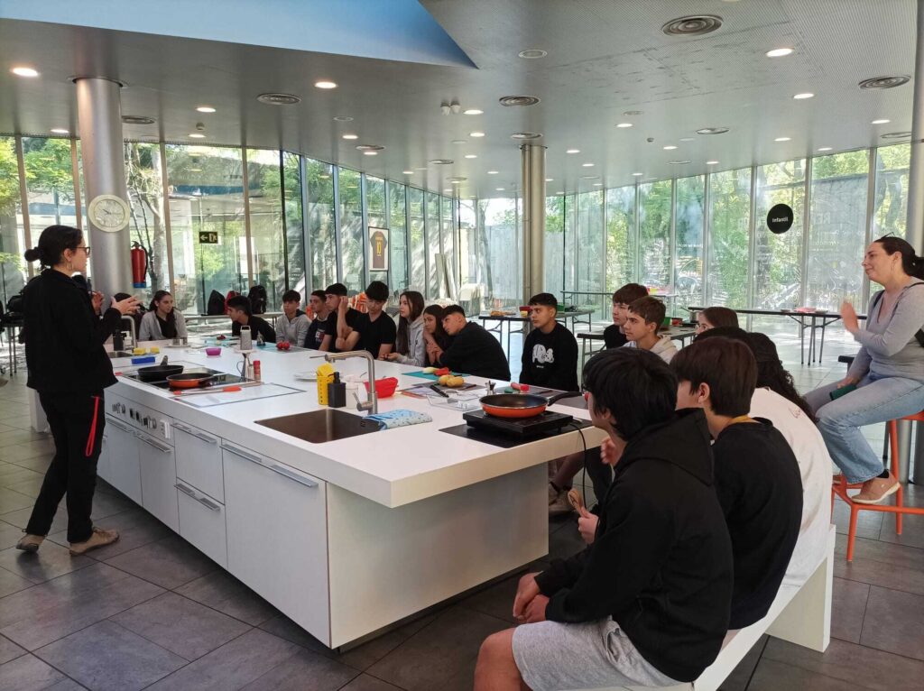 Aquesta sortida l’hem fet per l’assignatura de Socials i de Ciències experimentals i hem dut a terme dues activitats. La primera era de cuinar; primer vam fer grups de 5, amb aquest grup ens feien un joc de preguntes i els guanyadors escollien entre cinc plats per cuinar. A mesura que cuinaven ens feien jocs de “verdader o fals” i si les feies bé et donaven espècies per millorar el teu plat. Quan tothom acabava podies tastar el plat de tots els teus companys. Ens van quedar realment bons!