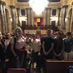 Vam passejar pels passadissos dels passos perduts a on vam contemplar l’extraordinària obra “7 de novembre”, d’Antoni Tàpies, que recorda la reunió constituent de l’Assemblea de Catalunya a Barcelona, el 7 de novembre de 1971, per finalment arribar a l’hemicicle.