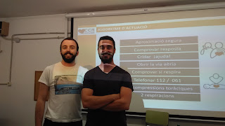 Dos alumnes del Grau d’Infermeria han ensenyat als alumnes de 3r d’ESO a fer Reanimació càrdio-pulmonar. Aquesta tècnica és molt important, ja que qualsevol de nosaltres ens podem trobar, un dia o altre, en una situació en la que se’ns requereixi per practicar-la i cal tenir unes nocions bàsiques.