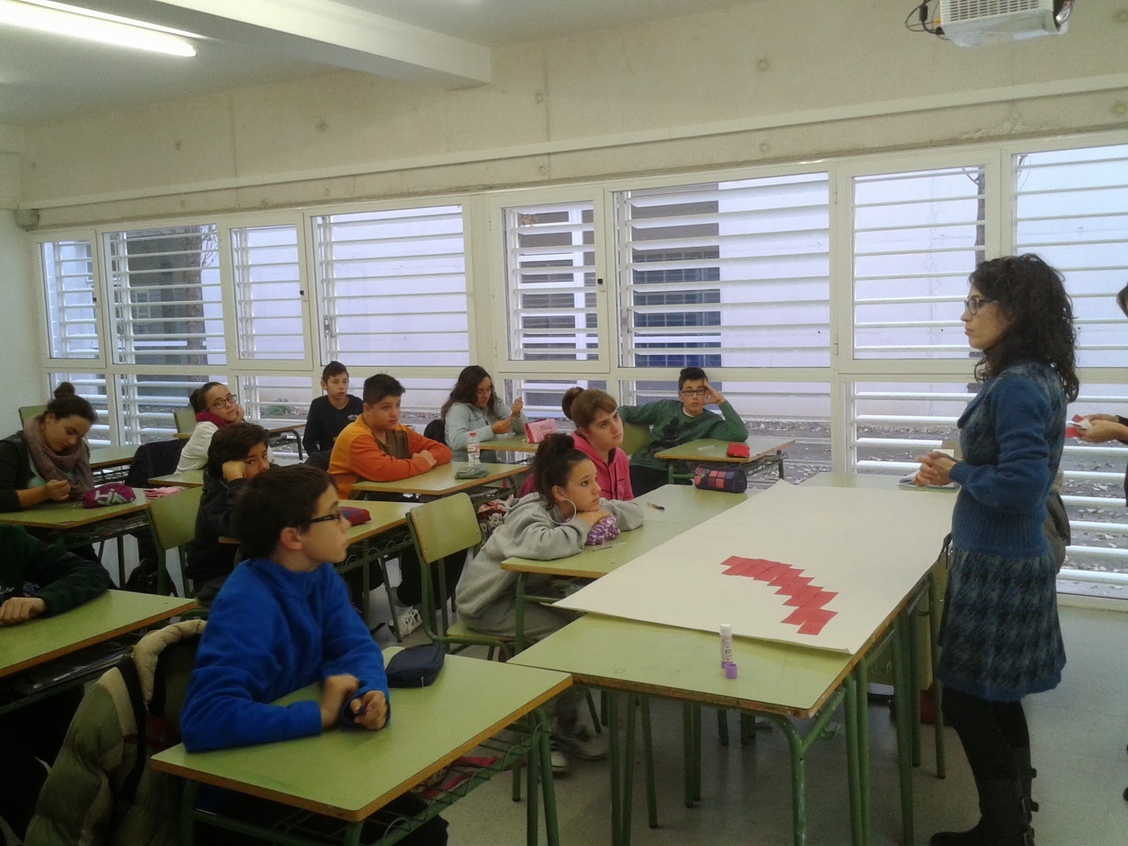Ens van repartir unes informacions sobre el VIH, unes eren veritat (la sida es la ultima fase del VIH) i d’altres no ho eren (la sida es transmet per via respiratòria),nosaltres havíem de triar si eren certes o falses i finalment les vam enganxar en un mural i va quedar un llaç vermell que representa el símbol de la lluita contra la Sida.Leire Sagra Garcia, 1rA