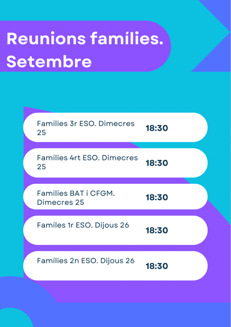 Reunions famílies d’inici de curs Feu un comentari / Per insrdt / 19/09/2024 / ACTIVITATS A L'INSTITUT ALUMNES General INFORMACIÓ Portada
