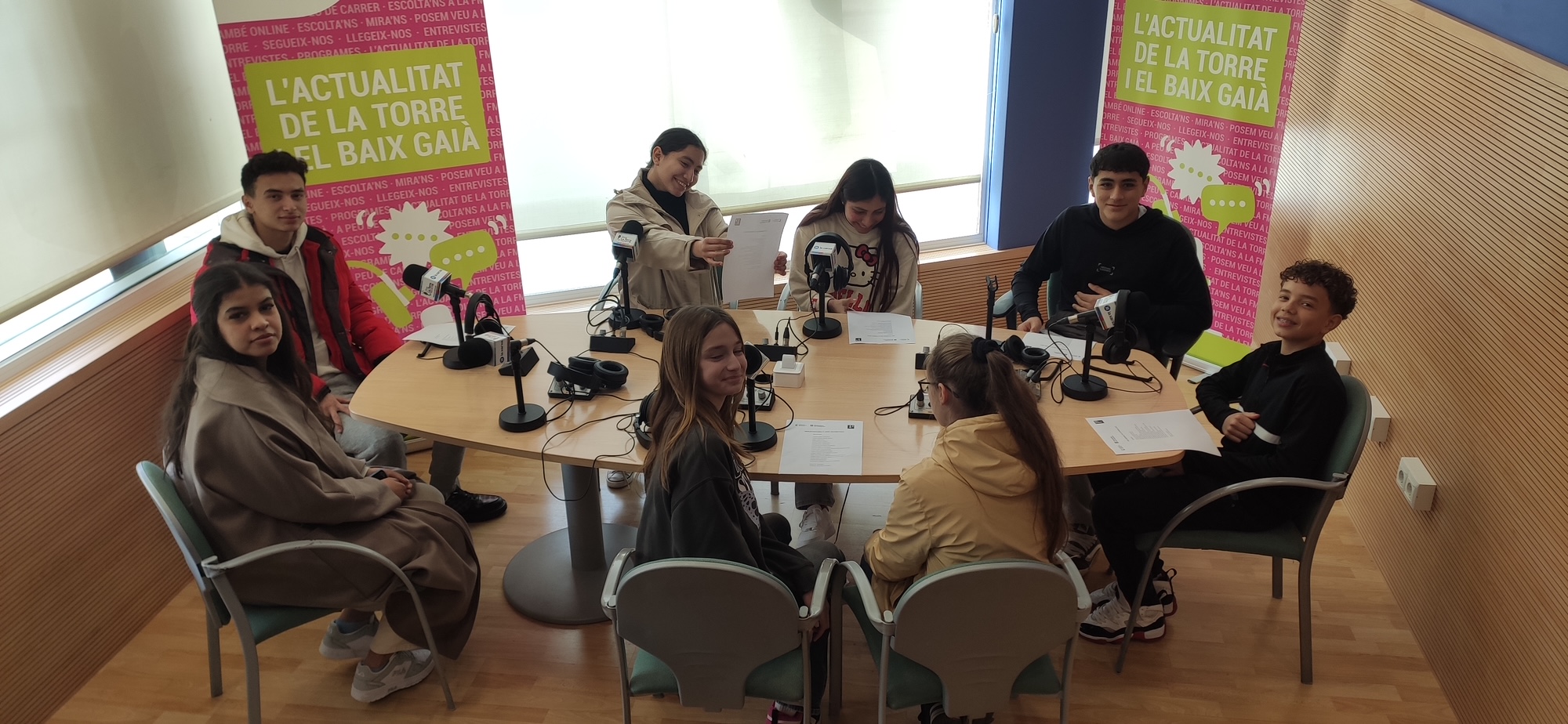 Després vam anar a l’Ona La Torre, l’emissora municipal de Torredembarra, on vam enregistrar el poema, recitant-lo en els diferents idiomes que parlem. Ens podreu escoltar si poseu la ràdio durant la setmana del Dia Mundial de la Poesia (21 de març). En tenim moltes ganes!