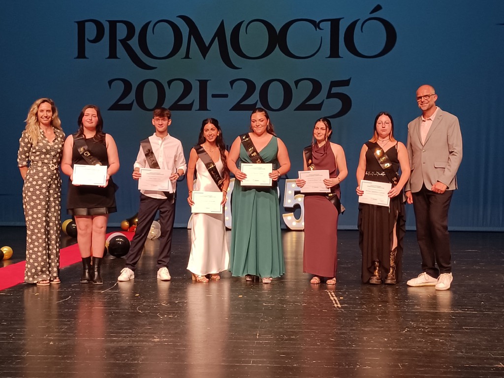 Durant la graduació de 4t d’ESO es va fer entrega d’un certificat de reconeixement als millors expedients acadèmics del curs, destacant l’esforç, la constància i l’excel·lència de l’alumnat. També es va fer homenatge a tot el grup de quart, que finalitza aquesta etapa obligatòria amb il·lusió i nous reptes per endavant.