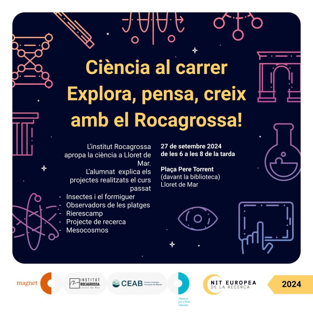 Presentarem els projectes que vam treballar el curs passat en col·laboració amb el Centre d’Estudis Avançats de Blanes, una aliança que ens ha permès realitzar molts projectes de ciència per apropar el nostre alumnat en la recerca i el mètode científic, a la reflexió i al raonament crític.