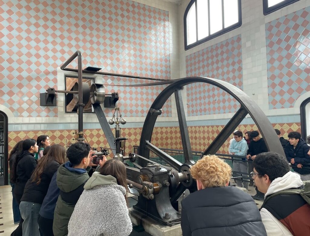 Així doncs, la sortida pedagògica dels alumnes de 3r d’ESO estava vinculada a la mecànica i a les fonts d’energia , els estudiants van poder experimentar de primera mà com funcionen els engranatges i també les principals fonts d’energia al llarg de la història. Per poder aproximar-se en aquests conceptes, que també treballen a l’aula, no hi havia millor lloc que el Museu Nacional de la Ciència i la Tècnica de Catalunya, el MNACTEC. En aquest espai museístic, dins una impressionant nau industrial tèxtil del s.XIX, els van acollir diferents monitors que els van guiar en els seus descobriments, primer en un taller i després en una visita guiada i comentada a diferents parts del museu. .
