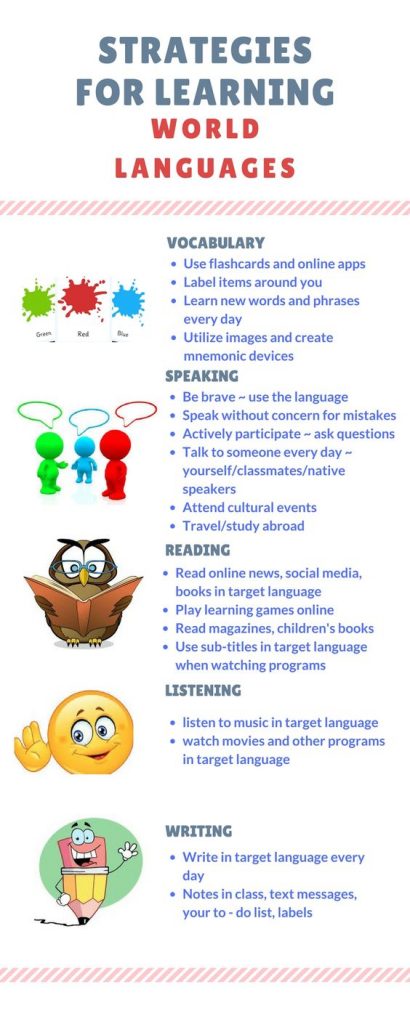 En la imatge pots llegir algunes estratègies per millorar la teva competència lingüística en català, castellà, anglès, francès…