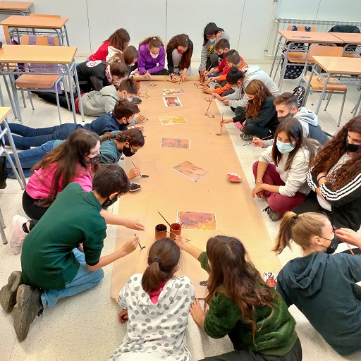 Els alumnes de 1r ESO han gaudit d’ una jornada prehistòrica amb la realització d’una pintura rupestre, la fabricació d’un collaret i la caça d’un os.