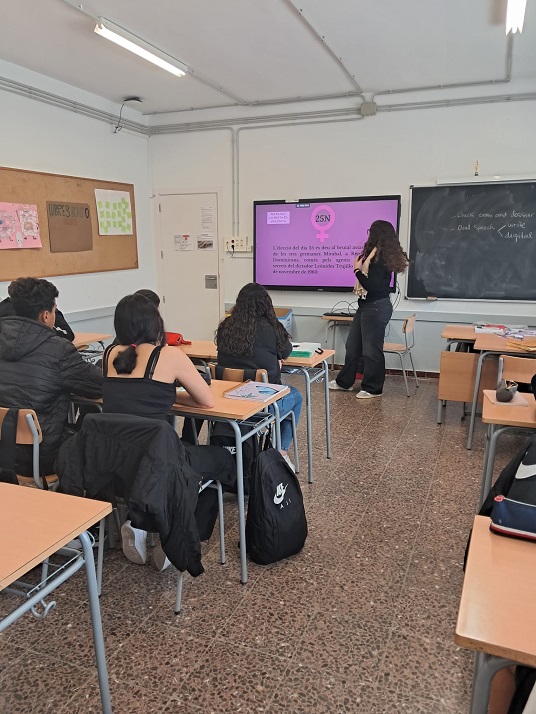 Amb motiu d’aquest dia assenyalat, els delegats liles del nostre centre amb el lema NO ÉS NO I LA RESTA ÉS VIOLÈNCIA han organitzat un minut de silenci i després han explicat als seus companys el significat d’ aquest gest. També han portat una samarreta negra com a símbol de dol per les dones assassinades.