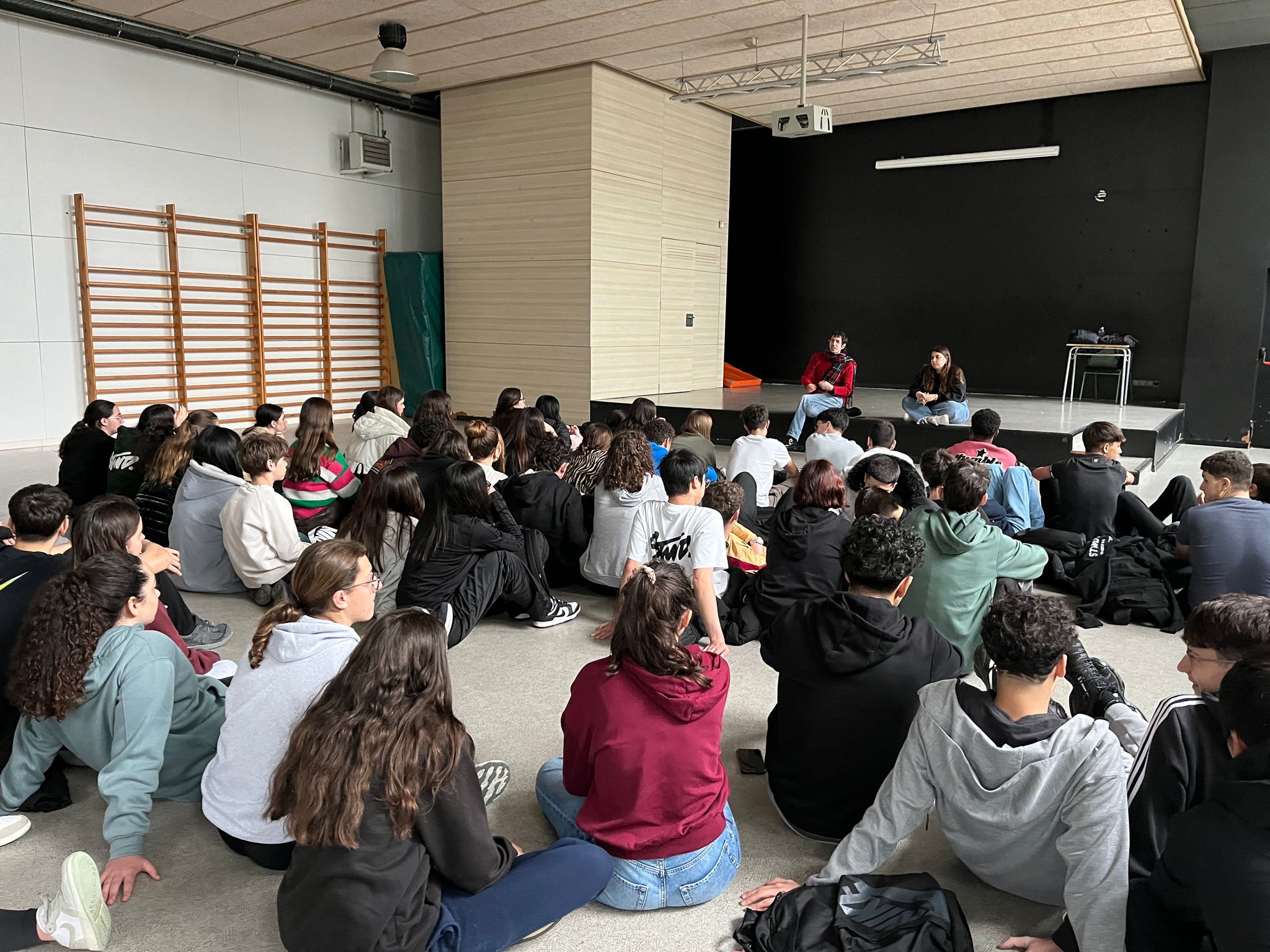 En concret han parlat de l’obra “Massa brillant” que té la intenció de fer reflexionar als alumnes sobre el seu lloc i les seves relacions amb l’amistat, l’amor, la identidat sexual i la llibertat individual.