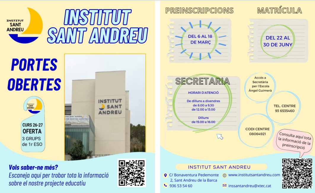 El dia 2 de març de 2026, hem fet les portes obertes per a les famílies que han de fer la preinscripció a primer d’ESO per al proper curs 26-27.