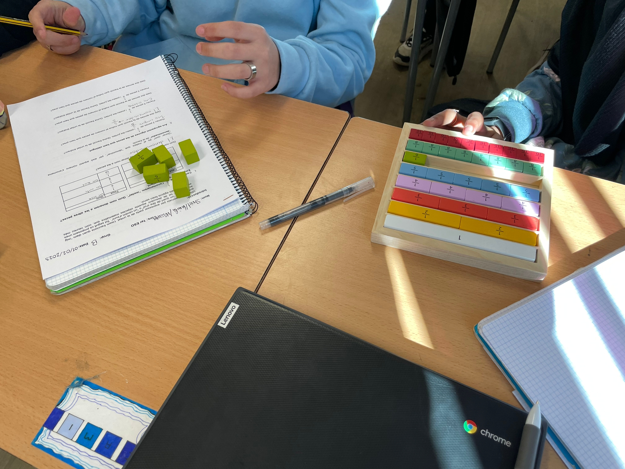 01/02/23A la matèria de matemàtiques a 1er d’ESO s’està duent a terme la Unitat Didàctica de les fraccions. Són conceptes que ja havien començat a veure a primària, però que cal reforçar doncs els acompanyaran durant tota la secundària.