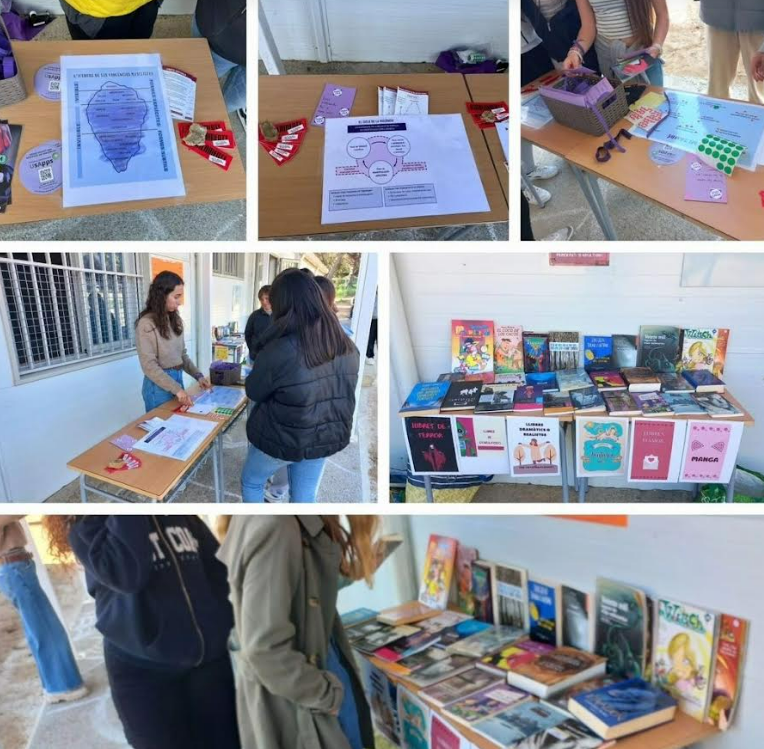 23/05/24Com cada abril, el Sant Quirze s’engalana per celebrar la Diada de Sant Jordi! Cada curs ha pogut gaudir d’un taller diferent : “blackout poetry” (1r), pintar el camí del pati de l’Institut amb guixos de colors (2n), fabricar xaper per finançar el viatge de fi de curs de l’any vinent (3r) i crear “espirals poètiques” (4t). A més a més, a banda de la tradicional paradeta de llibres, aquest any també hem comptat amb un Punt Lila on l’alumnat ha pogut fer diverses dinàmiques per reflexionar sobre la desigualtat de gènere.