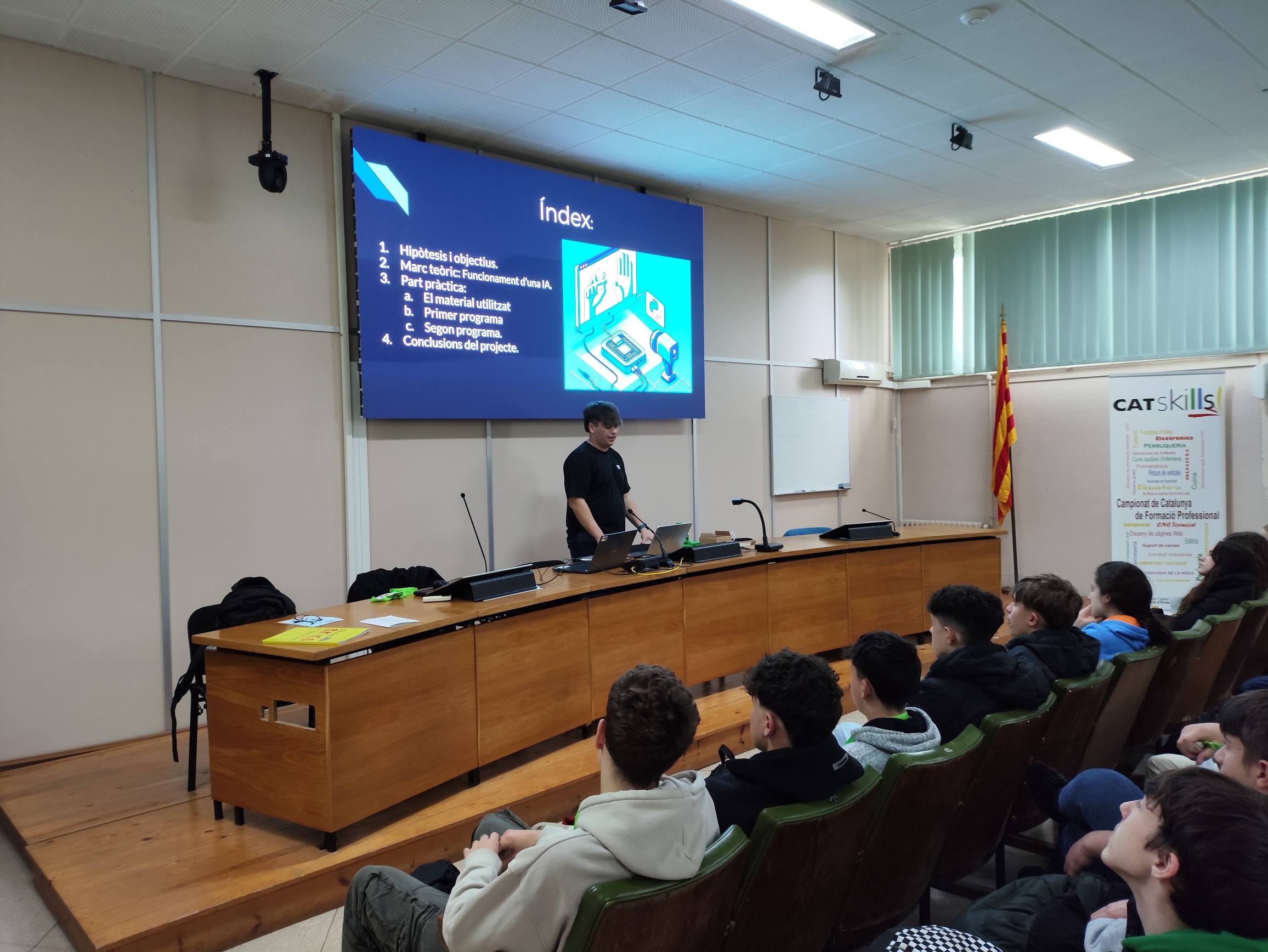 14/03/25Tres alumnes del Serra participen a la XVII edició del Fòrum TRiCS científic-tecnològic que es va celebrar el passat divendres 14 de març: Itziar Velasco amb el treball Llum contra el càncer, el treball consta de la realització d’un prototip basat en la bioluminescènci, Pol Anglès amb el treball Visió artificial: un futur ja present, el treball es basa en el reconeixement del llenguatge de signes mitjançant una IA i Martí Pocurull amb el treball Resistència al vent: creant un cotxe d’aerodinàmica òptima, el treball estudia l’aerodinàmica de tres cotxes modelats en 3D fent ús d’un túnel de vent de fabricació pròpia.