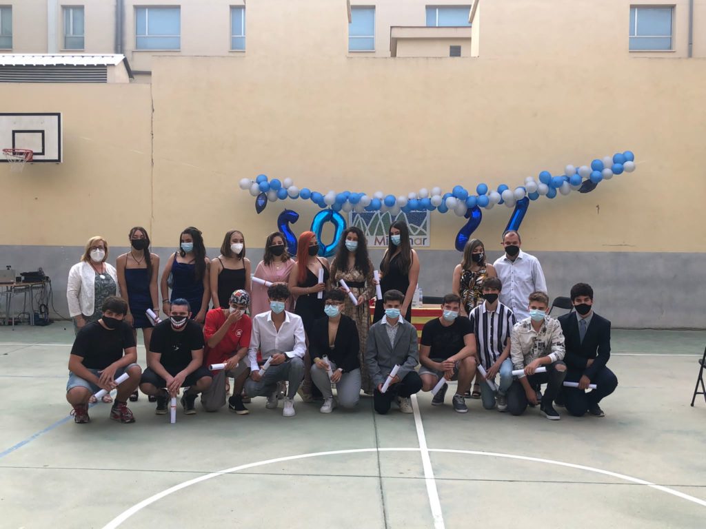 Les/els estudiants que han finalitzat l’etapa d’Educació Secundària Obligatòria han estat mereixedors/es del títol de GESO. Vuit alumnes amb un expedient acadèmic d’excel·lent: Anna Triviño Solà, Abril Begué Alcañiz, Júlia Vernet Ciurana, Jaume Custodi Eyzaguirre, Ot Riera Galofré, Òscar Andreu Carles, Oriol Anglès Ferré i Lluís Dalmau Mendoza. Tot l’equip docent us felicita i us encoratja a aconseguir molts èxits més en els estudis postobligatoris que el curs vinent inicieu. Així mateix felicitem les vostres famílies que us han acompanyat en aquest camí donat-vos suport i estant al vostre costat. També felicitar a l’equip docent que us hem guiat en tot aquest procés amb l’objectiu de fer possibles els vostres reptes. Nosaltres ens sentim realitzats si vosaltres aconseguiu finalitzar amb èxit els vostres estudis, enfortiu els vincles d’amistat i sou portadors/es dels valors socials que faran possible la vostra integració en la societat actual.