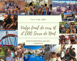 Els alumnes de 4t d’ESO han començat el viatge de final de curs. Han arribat aquest matí a PortAventura on hi passaran dos dies gaudint de les atraccions del parc. Aquesta nit soparan al Buffet del Mar i dormiran a l’hotel PortAventura de quatre estrelles.