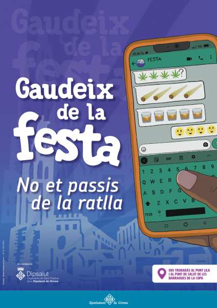 En aquest sentit, dues il·lustracions seran de sensibilització i prevenció sobre les drogues, creades per persones joves a través d’un concurs. Les autores són dues estudiants del batxillerat artístic de l’Institut Santiago Sobrequés: la Mireia Grabulosa Ferrer i l’Ada Sabadell Grau. Un dels cartells es mostrarà a les marquesines dels busos de la ciutat, durant el període de Fires, i l’altre es repartirà per l’esplanada de la Copa.