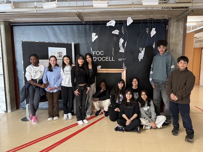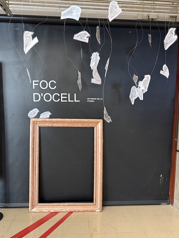 L’alumnat de l’Aula d’acollida de l’Institut Sobrequés ha participat en aquesta celebració en la creació d’ocells que porten escrites paraules en diferents idiomes (català, castellà, portuguès, francès, guaraní, wòlof i àrab). Aquesta selecció de paraules simbolitza el concepte de llibertat i s’ha extret del poema Foc d’ocell